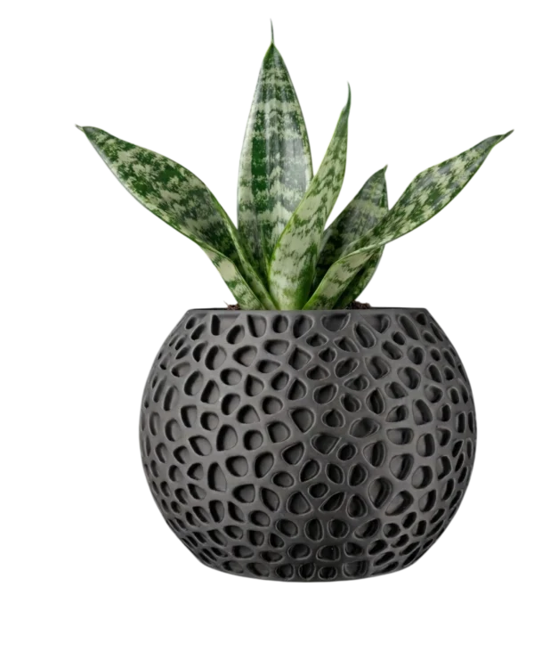 La Maceta Voro no es solo un contenedor para tus plantas, es una pieza de diseño digital que aporta sofisticación y modernidad a cualquier espacio. Su patrón exterior, inspirado en las estructuras geométricas de la naturaleza, crea un juego visual de luces y sombras que cambia según el ángulo desde el que se mire,  diseñada para quienes buscan exclusividad en cada rincón.